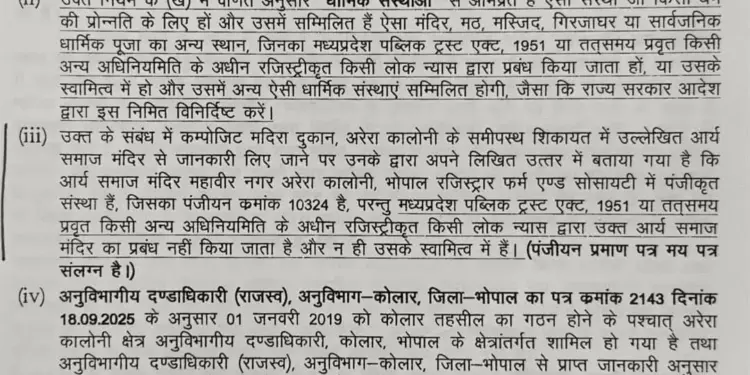 शिकायतकर्ता विवेक त्रिपाठी ने बताया कि जिस स्थान पर शराब की दुकान खोली गई है, वह नगर निगम भोपाल से अनुमति प्राप्त आवासीय उपयोग के लिए भूखंड है। दुकान के ठीक बगल में एक बच्चों का अस्पताल है, जहां महिलाएं और बच्चे नियमित रूप से आते-जाते हैं। इसके अलावा, दुकान से मात्र 50 मीटर की दूरी पर आर्य समाज का मंदिर भी स्थित है, जहां बुजुर्गों की मौजूदगी में नियमित धार्मिक अनुष्ठान होते हैं।