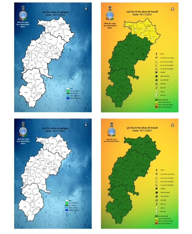 | 18-11-2025 | साफ | उत्तरी छत्तीसगढ़ में शीत लहर की संभावना |