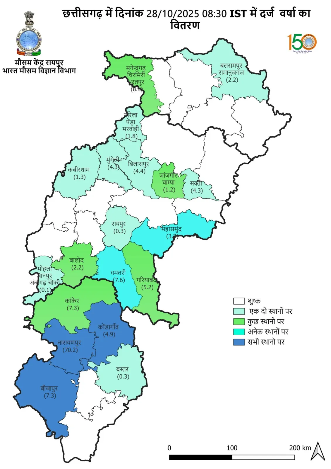 मौसम विभाग ने चेतावनी दी है कि अगले 2 दिनों तक मध्य और दक्षिण छत्तीसगढ़ में मध्यम से भारी वर्षा का सिलसिला जारी रहेगा। लोगों को सलाह दी गई है कि खुले क्षेत्रों में रहने से बचें, पेड़ों या बिजली के खंभों के नीचे खड़े न हों और जरूरत पड़ने पर ही यात्रा करें। किसानों को फसल की सुरक्षा और जल निकासी व्यवस्था पर ध्यान देने की हिदायत दी गई है।