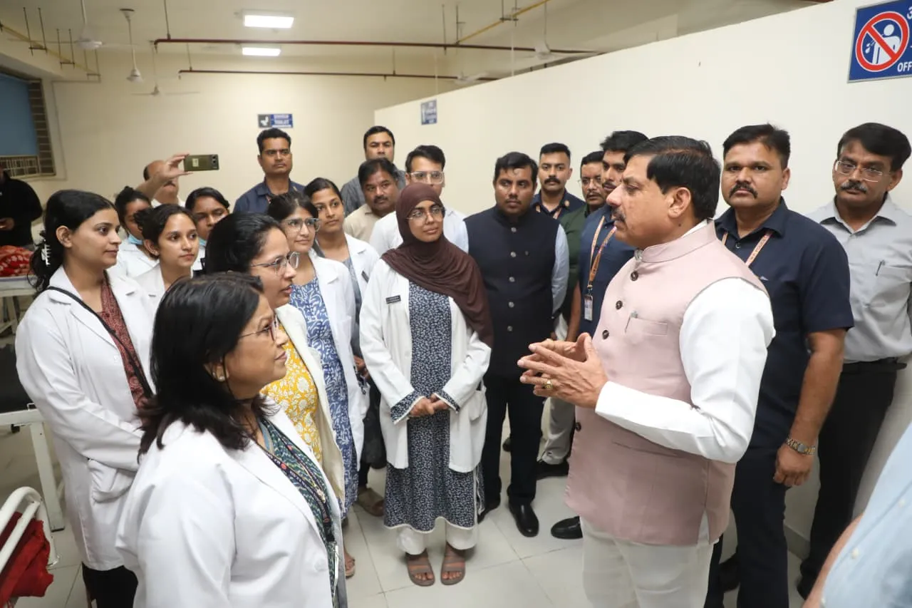 सीएम मोहन यादव ने हमीदिया अस्पताल में स्टॉफ से घायलों के इलाज पर चर्चा की।