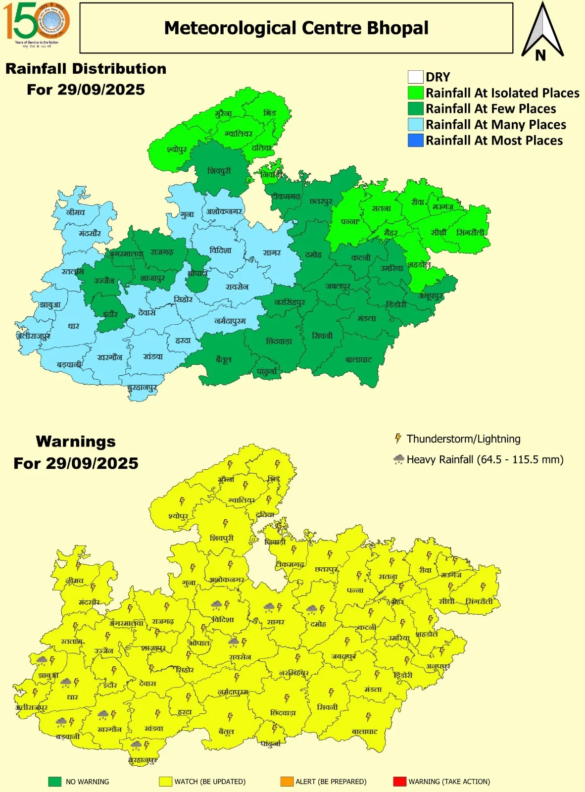 भोपाल मौसम केंद्र से 24 सितंबर, 2025 को उत्तर-पश्चिम के चार जिलों से मानसून के विदाई की घोषणा की थी। जिसके बाद से अब तक मानसून करीब 11 जिलों को अलविदा कह चुका हैं। जिनमें ग्वालियर, श्योपुर, मुरैना, भिंड, दतिया, शिवपुरी, गुना, आगर-मालवा, नीमच, मंदसौर और रतलाम शामिल हैं।