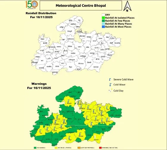 MP Weather Update: मध्यप्रदेश में ठंड का असर लगातार बढ़ रहा है। श्रीलंका तट के पास बंगाल की खाड़ी के दक्षिण-पश्चिम में बना निम्न दबाव का क्षेत्र आज (16 नवंबर) सुबह भी सक्रिय रहा। इससे जुड़ा ऊपरी वायु चक्रवात समुद्र तल से करीब 7.6 किलोमीटर ऊंचाई तक फैला है और ऊपर जाते-जाते दक्षिण-पश्चिम की ओर झुका हुआ दिख रहा है। मौसम विभाग का कहना है कि यह सिस्टम अगले 24 घंटों में धीरे-धीरे पश्चिम-उत्तर-पश्चिम की ओर बढ़ेगा। आज रात प्रदेश के कई जिलों में ठंड और तेज महसूस होगी।