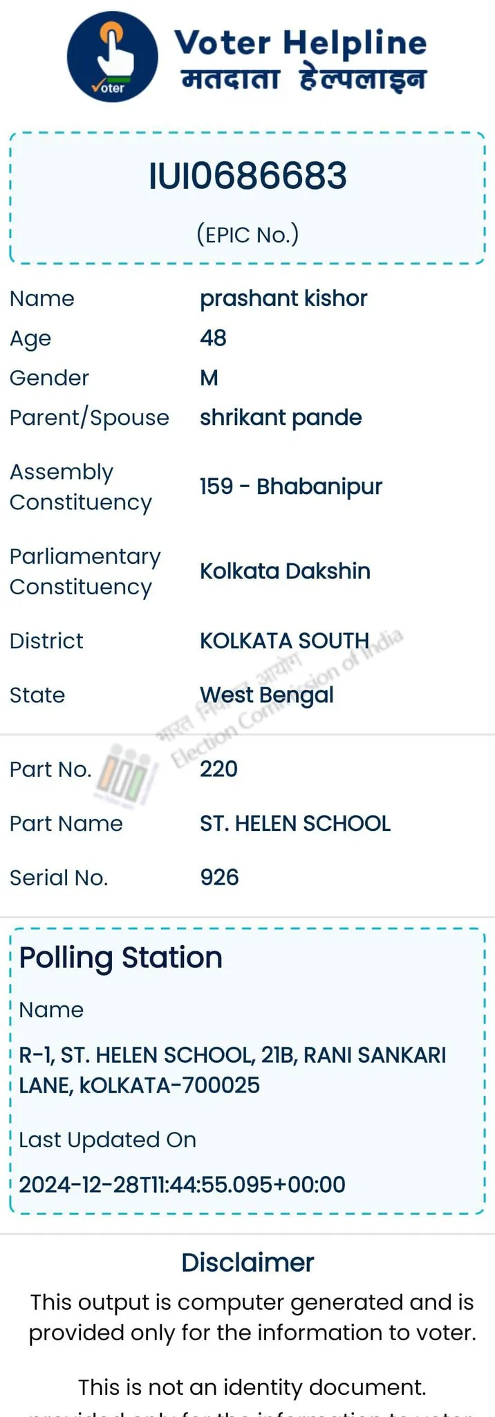 बताते चलें कि साल 2021 में प्रशांत किशोर ने बंगाल विधानसभा चुनाव में तृणमूल कांग्रेस के चुनावी कैपेन में राणनीतिकार के तौर पर काम किया था। चुनाव आयोग के मुताबिक, प्रशांत ने सेंट हेलेन स्कूल, बी. रानीशंकारी लेन के मतदान केंद्र में अपना मतदान किया था। जनप्रतिनिधित्व अधिनियम यानि (Representation of the People Act, 1950) की धारा 17 के मुताबिक कोई एक व्यक्ति एक नाम से एक से अधिक निर्वाचन क्षेत्र में अपना नाम दर्ज नहीं करा सकता। एक व्यक्ति एक ही राज्य में वोट दे सकता है। अगर उस व्यक्ति ने किसी कारण से वो राज्य छोड़ दिया है तो तो उसे Form 8 भरकर पुराने स्थान से नाम हटाने की प्रक्रिया करनी होती है।