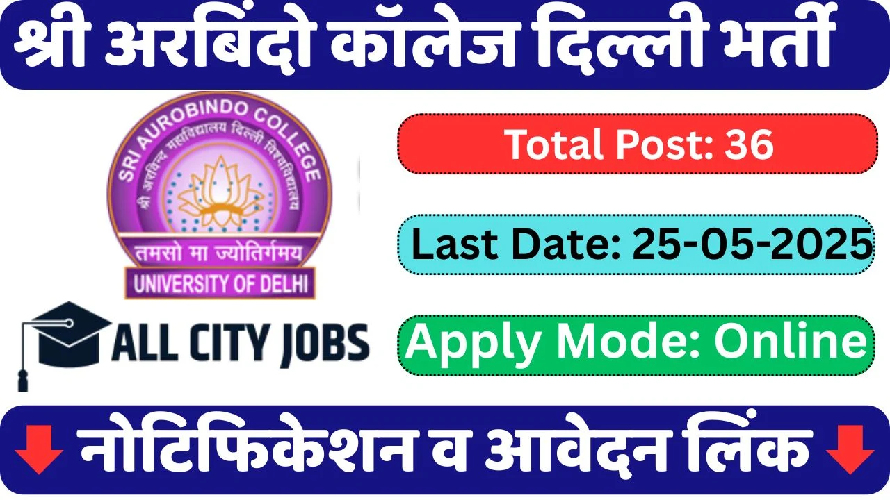 Sri Aurobindo College Delhi Jobs: श्री अरबिंदो कॉलेज दिल्ली में आई विभिन्न नॉन टीचिंग पदों पर भर्ती, 25 जून तक करें आवेदन