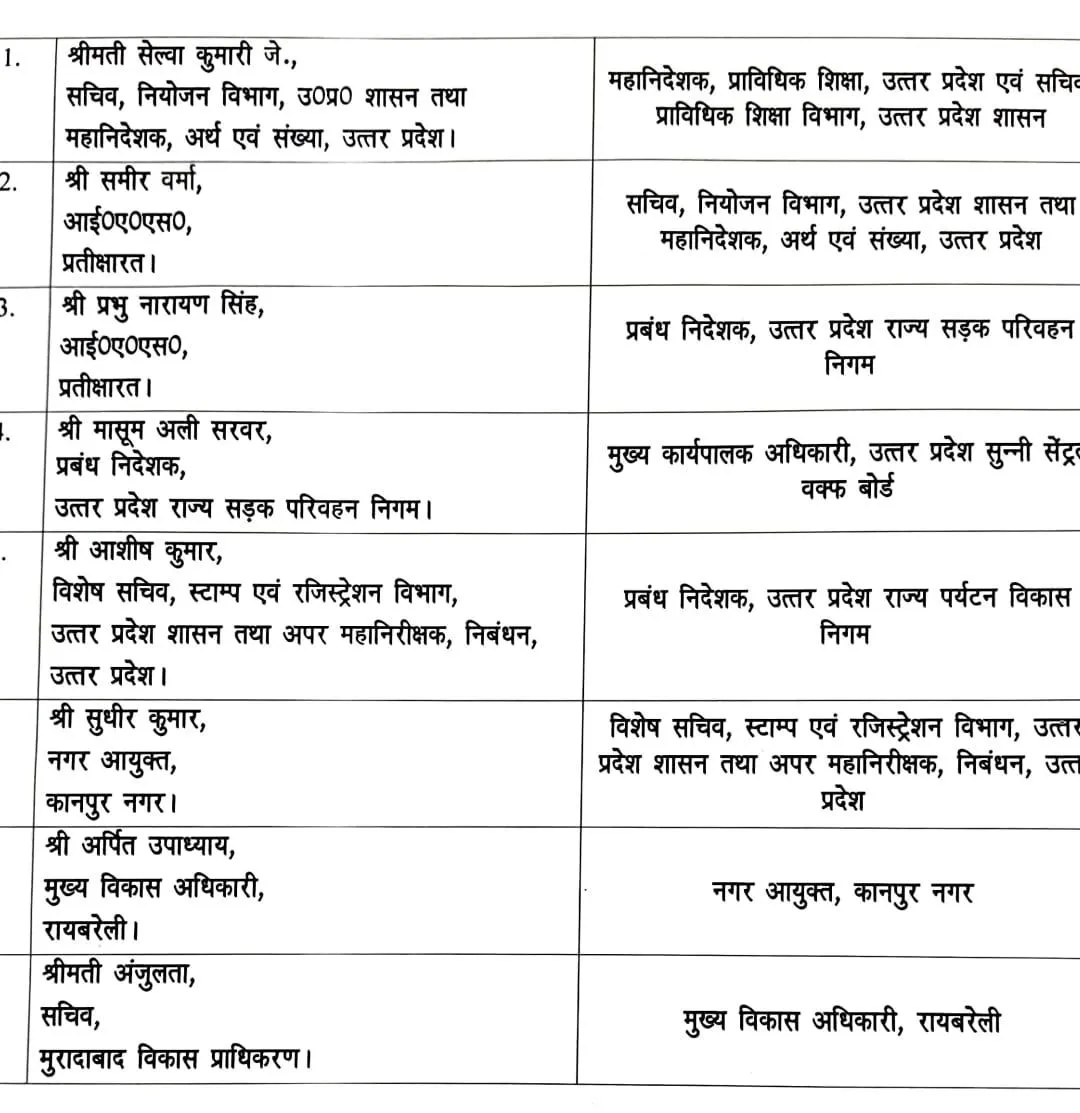 अंजुलता (Anjulta), जो सचिव, मुरादाबाद विकास प्राधिकरण (Secretary, Moradabad Development Authority) थीं, को अब मुख्य विकास अधिकारी, रायबरेली (CDO, Raebareli) के पद पर नियुक्त किया गया है।