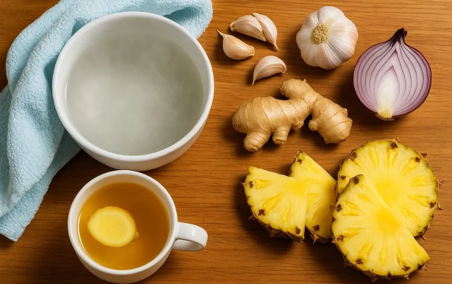 अनानास: इसमें पाया जाने वाला एंजाइम *ब्रोमेलिन* (Bromelain) बलगम को कम करता है और श्वसन नली को साफ रखता है।